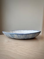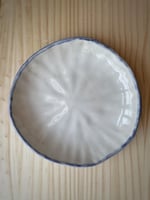 Bring coastal charm to your table with this 7.5-inch handmade ceramic plate, featuring a shell stamp spiral design in ocean blue. The matte exterior contrasts beautifully with the glossy interior, creating a natural ocean-inspired look. Perfect for desserts, appetizers, or display, each plate is hand-built, hand-glazed, and completely unique. Food, microwave, and dishwasher safe.